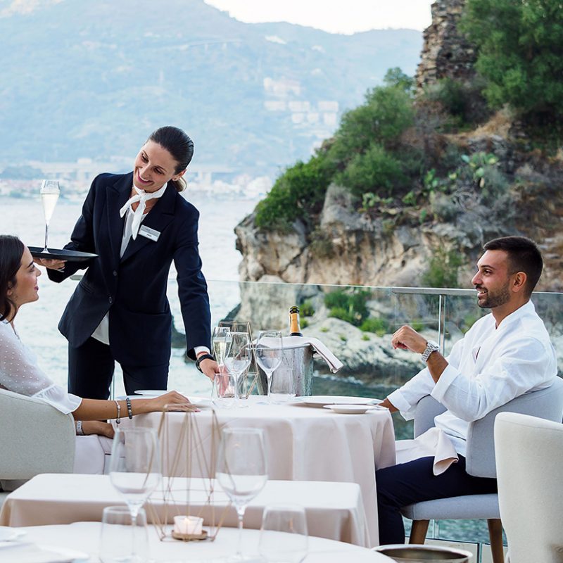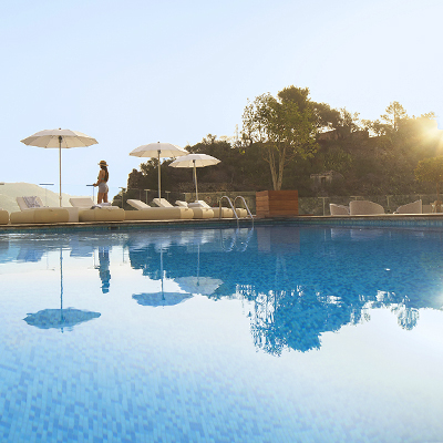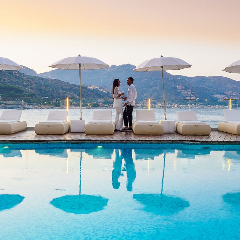 Unwind between the sky and the sea in our exclusive pool, which is on a natural terrace overlooking the Baia Delle Sirene.
