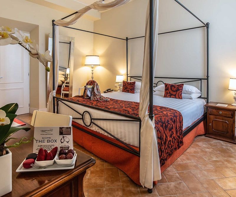 Situate nella nuova ala del Convento Seicentesco, sono arredate con letti matrimoniali a baldacchino.